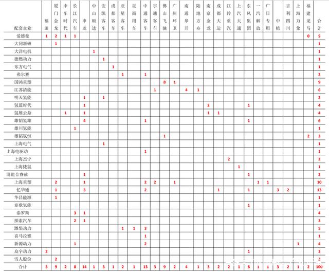 2019年氫燃料電池供應(yīng)商配套企業(yè)與車型數(shù)量