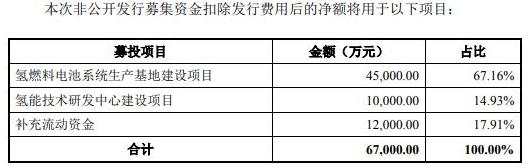 近日,雪人股份發布2021年非公開發行A股股票預案,擬募資不超過6.7億元(即67,000.00萬元),其中4.5億元用于氫燃料電池系統生產基地建設項目。