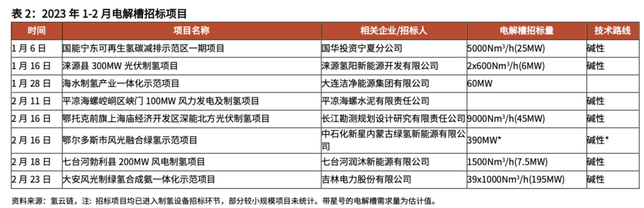 隨著氫能產業化進程加快,電解水制氫設備成為市場關注焦點。數據顯示,在2023年前兩個月,國內已有8個綠氫項目公開招標電解槽設備,總量達到763.5MW,同比增長近200%,超過了2022年全年國內電解槽出貨量。目前中國主要依賴化石燃料制氫方式,而電解水制氫占比極低。目前中國企業在全球市場占據主導地位,在2022年全球出貨量約為1GW時,國內出貨量就達到了750MW左右。