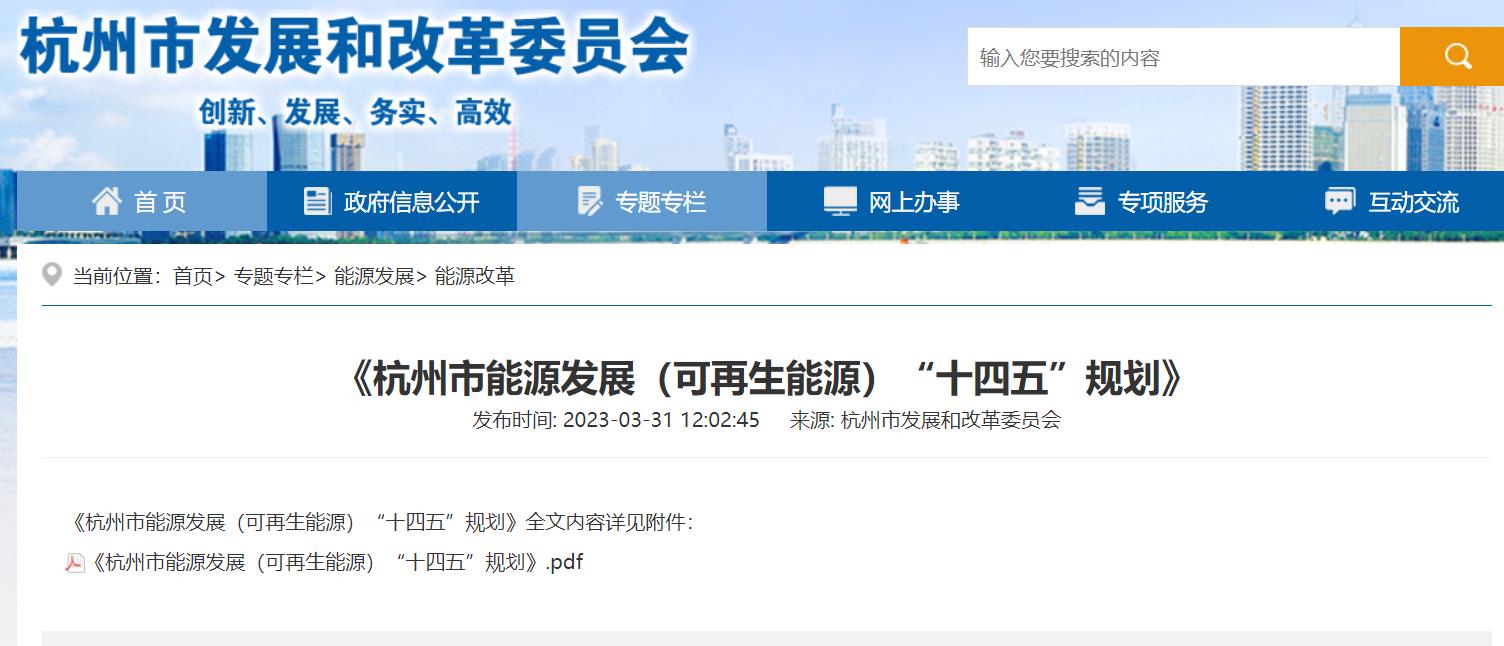 氫啟未來網獲悉,3月31日,杭州市發展和改革委員會印發《杭州市能源發展(可再生能源)“十四五”規劃》