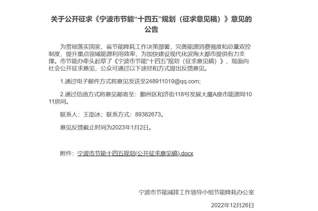 氫啟未來網(wǎng)獲悉,12月26日,寧波市節(jié)能減排工作領(lǐng)導(dǎo)小組節(jié)能降耗辦公室發(fā)布《寧波市節(jié)能“十四五”規(guī)劃(征求意見稿)》