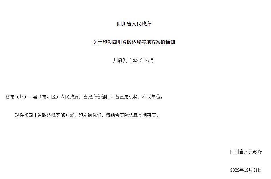 氫啟未來網(wǎng)獲悉,1月5日,四川省人民政府印發(fā)《四川省碳達(dá)峰實(shí)施方案》