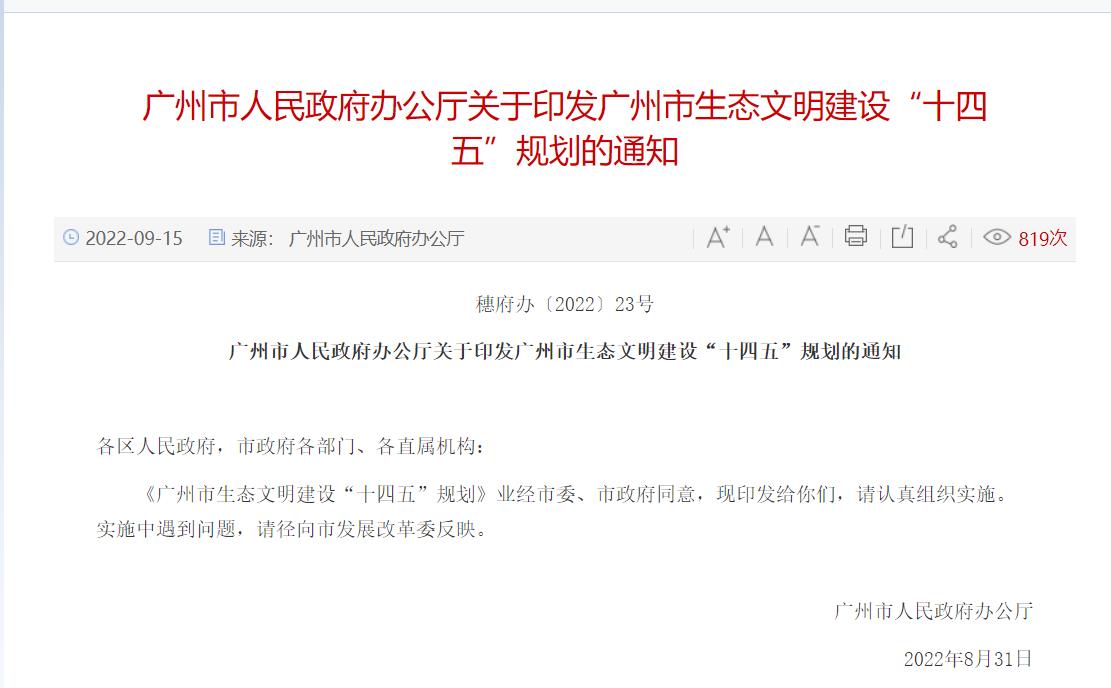 氫啟未來網獲悉,9月15日,廣州市人民政府辦公廳發布關于印發廣州市生態文明建設“十四五”規劃的通知