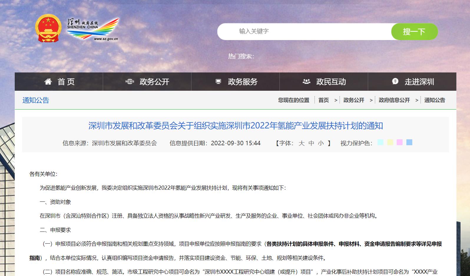 為促進氫能產業創新發展,深證市發展和改革委決定組織實施深圳市2022年氫能產業發展扶持計劃