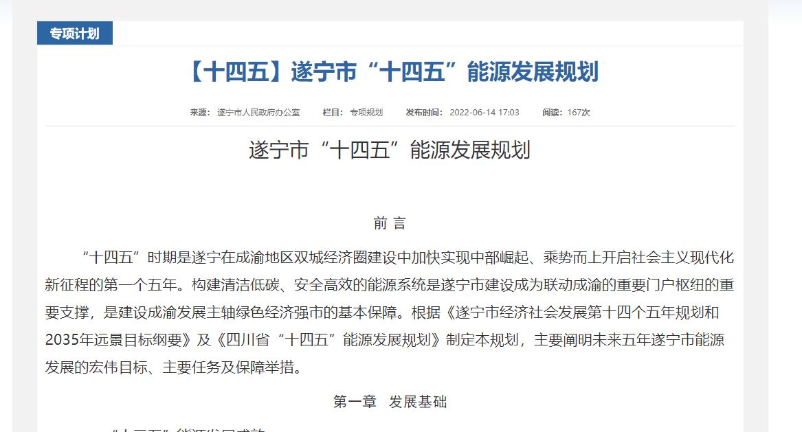 ?四川遂寧市“十四五”能源發展規劃:打造“制氫—儲氫—運氫—用氫”氫能全產業鏈