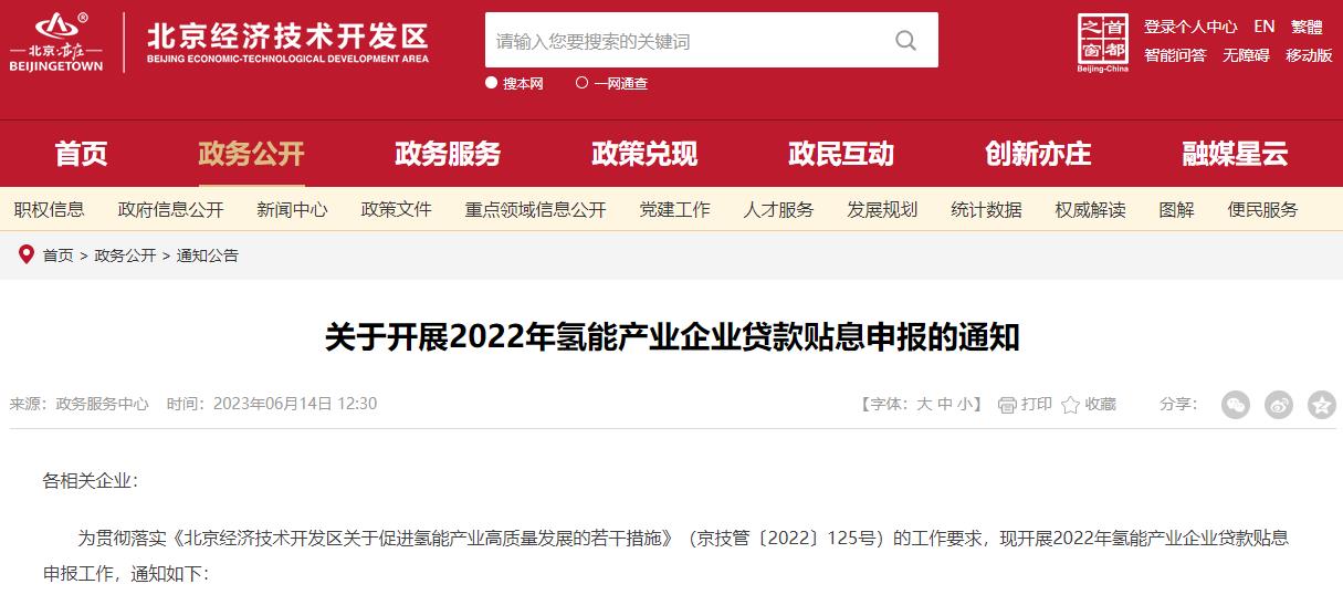 氫啟未來網獲悉,6月14日,為貫徹落實《北京經濟技術開發區關于促進氫能產業高質量發展的若干措施》(京技管〔2022〕125號)的工作要求,現開展2022年氫能產業企業貸款貼息申報工作。