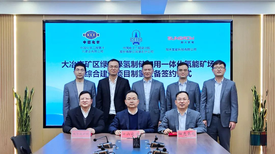 12月26日,國家清潔低碳氫能創(chuàng)新應(yīng)用工程——大冶市礦區(qū)綠電綠氫制儲加用一體化氫能礦場綜合建設(shè)項目“制氫設(shè)備”合同正式簽約。中國化學(xué)工程第十六建設(shè)有限公司武漢分公司總經(jīng)理李靜濤,中國電子工程設(shè)計院股份有限公司湖北分公司執(zhí)行院長王共,陽光電源副總裁、陽光氫能董事長彭超才等領(lǐng)導(dǎo)出席。