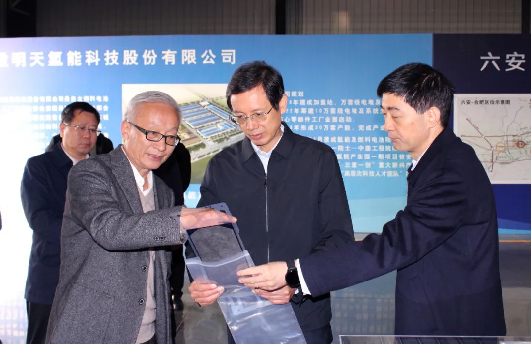 11月28日,六安市委書記方正來到明天氫能公司調研氫能產業發展情況。市人大常委會副主任、金安區委書記霍紹斌,市委秘書長汪宏軍、金安區長黃媛媛、金開區管委會黨工委書記林松參與調研,明天氫能公司董事長王朝云介紹公司產品及氫能產業發展情況。
