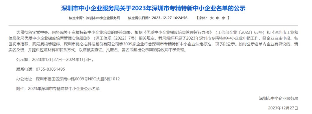 雄韜氫瑞榮獲“2023年深圳市專精特新中小企業”認定