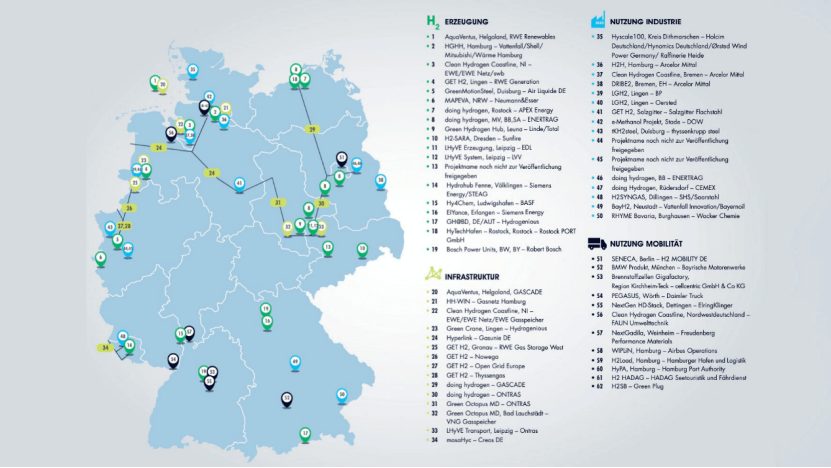 聯邦政府宣布,所有活躍在德國的生產商,包括阿塞洛-米塔爾(ArcelorMittal)、斯塔爾控股(Starr?。龋铮欤洌椋睿纭。樱幔幔颍欤⑺_爾茨吉特鋼鐵(Salzgit Steel)和蒂森克虜伯(ThyssenKrupp),都提交了鋼鐵行業的投資項目。巴斯夫(BASF)等化學公司還參與了一些項目,包括生產無二氧化碳氫及其后續用途(如氨或合成燃料)。