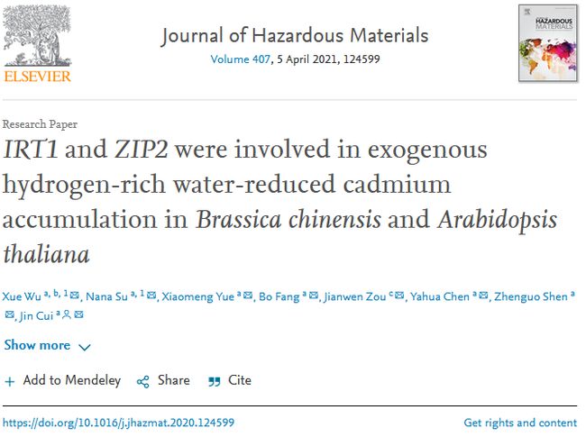標(biāo)題:IRT1and ZIP2were involved in exogenous hydrogen-rich water-reduced cadmium accumulation in Brassica chinensisand Arabidopsis thaliana