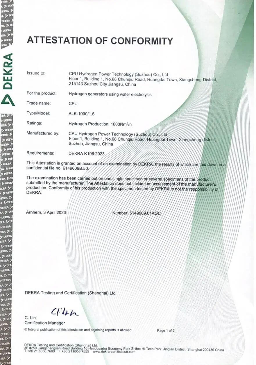 今年4月,希倍優(yōu)氫能1000Nm3/h堿性水電解制氫系統(tǒng)成功通過德凱的產(chǎn)品認證,驗證了希倍優(yōu)氫能電解槽的高性能和可靠性,并且高度契合能源轉(zhuǎn)型帶來的大規(guī)模制氫需求。
