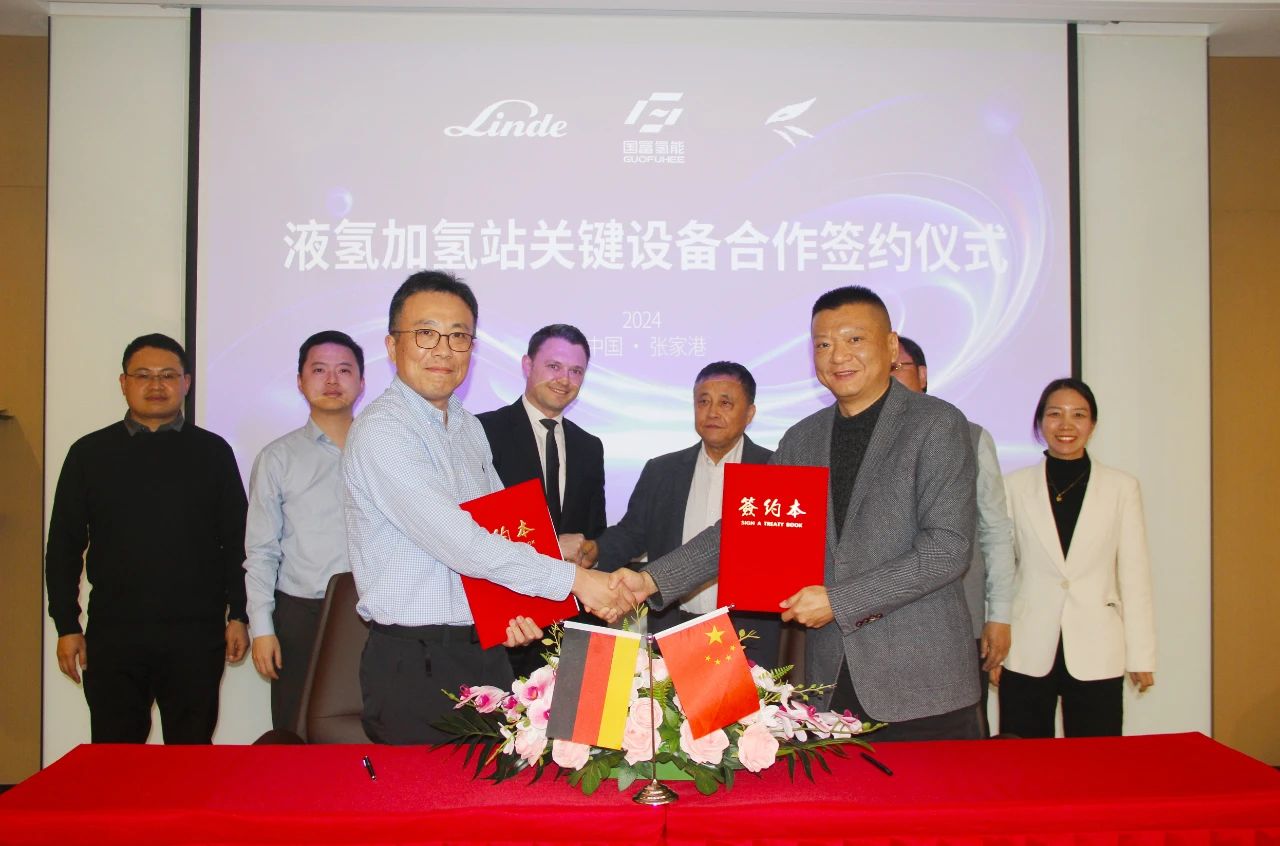 近日,在江蘇國富氫能技術裝備股份有限公司(下簡稱國富氫能)、Linde Hydrogen FuelTech GmbH(下簡稱Linde )、杭州能巨低溫設備有限公司(下簡稱杭州能巨)三方高層的見證下,國富氫能與杭州能巨(Linde Hydrogen FuelTech GmbH 中國區授權代理商)簽署重要合作協議,雙方將引進Linde在液氫加氫站領域的先進技術,展開在中國的深度合作。