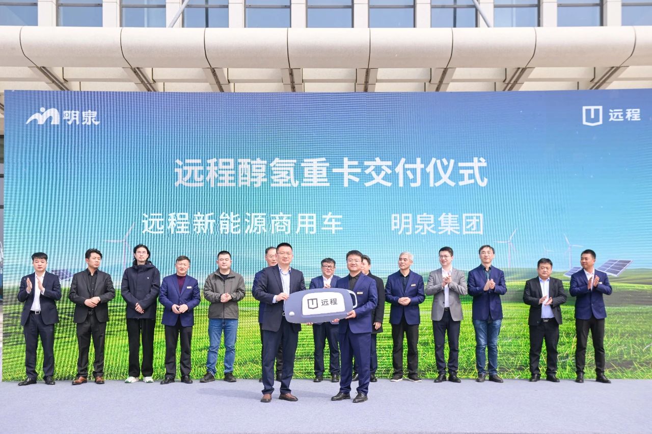 基于醇?xì)渖鷳B(tài)戰(zhàn)略上的高度共識(shí),遠(yuǎn)程新能源商用車與明泉集團(tuán)達(dá)成深度戰(zhàn)略合作,雙方將深度融合新能源資源優(yōu)勢(shì),在綠色甲醇制備-倉(cāng)儲(chǔ)-運(yùn)輸-應(yīng)用產(chǎn)業(yè)鏈閉環(huán)建設(shè)、新能源重卡場(chǎng)景化應(yīng)用等領(lǐng)域展開(kāi)全方位合作。活動(dòng)現(xiàn)場(chǎng)還批量交付了遠(yuǎn)程星瀚G醇?xì)湮;窢恳嚕蛟臁耙源歼\(yùn)醇”綠色運(yùn)力示范,為危化品運(yùn)輸行業(yè)高質(zhì)量發(fā)展注入強(qiáng)勁綠色動(dòng)能。