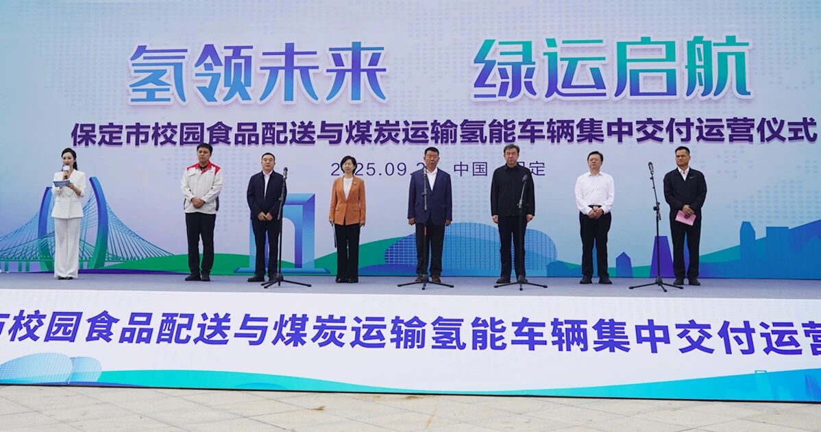 9月24日,保定市校園食品配送與煤炭運輸氫能車輛集中交付運營儀式在人民廣場舉行。