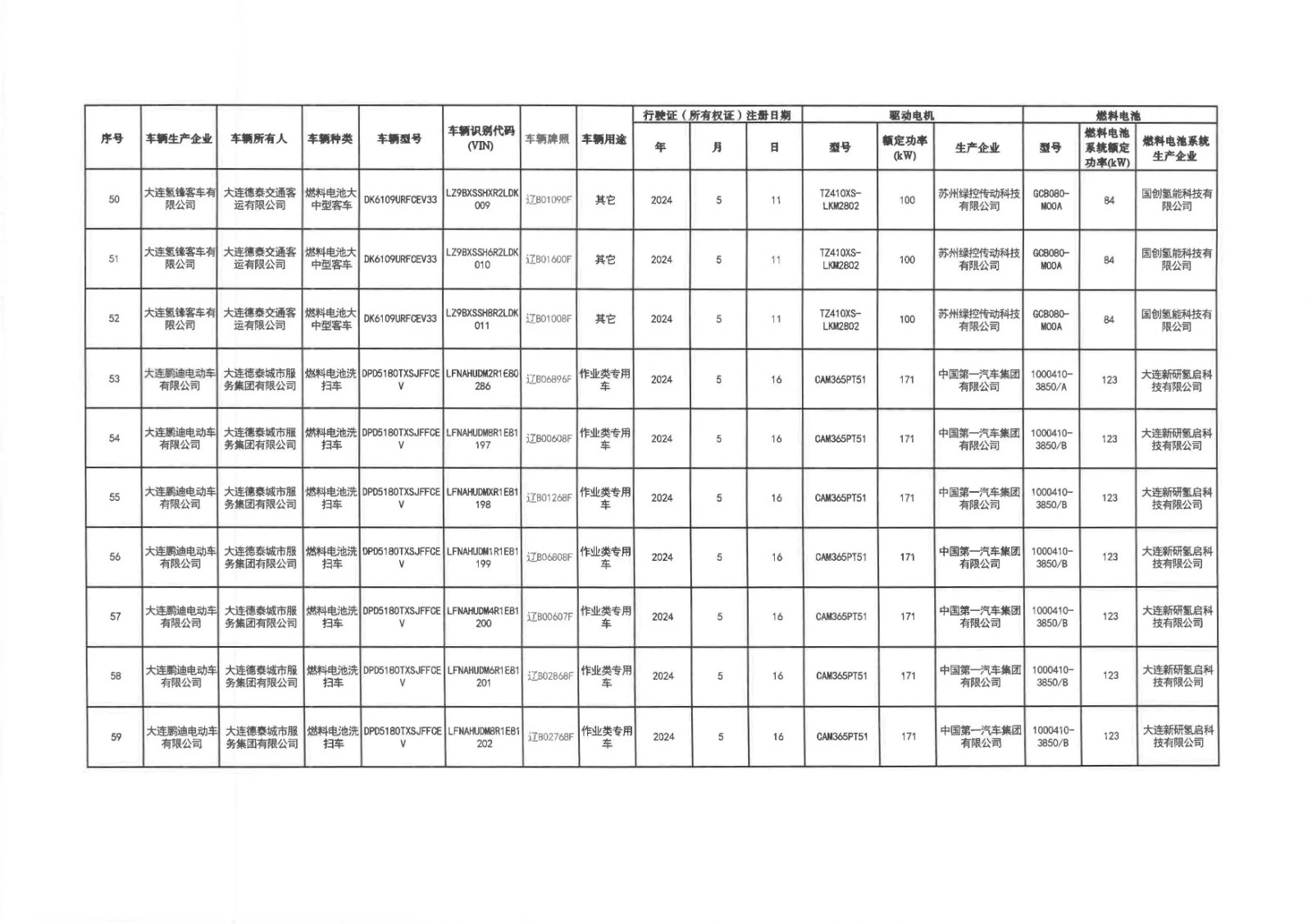 63輛!大連2024年度氫能源交通工具推廣應用補助資金申報項目公示