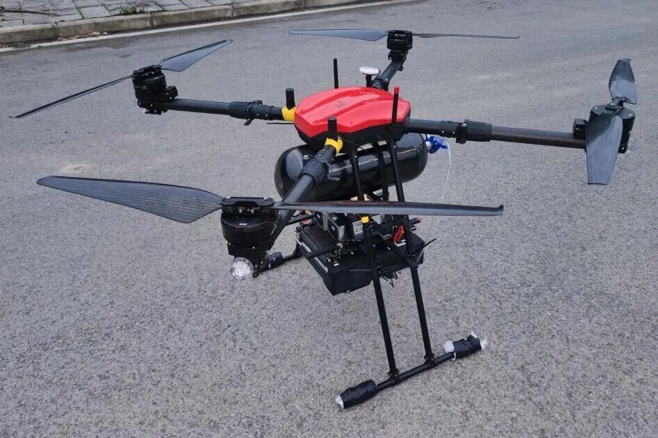 該無人機搭載高儲氫密度復合材料儲氫氣瓶。憑借輕量化設計與氫動力系統的高效特性,無人機在載重與續航性能上表現突出,展現了氫燃料電池動力在突破傳統鋰電池續航瓶頸方面的顯著優勢。研發過程中,各方充分發揮各自的技術優勢,為氫燃料電池動力無人機的技術攻關提供了重要支撐。氫燃料電池動力無人機相較鋰電無人機核心優勢在于高續航、快補能、強環境適應性,適用于嚴苛條件下作業,例如電力巡檢、遠距離物流配送、應急物資輸送等,有望大幅提升作業效率。