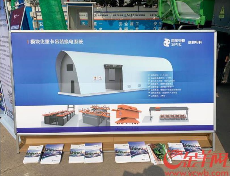 “即使是傳統(tǒng)電池電動車,純電動泥頭車也不一定非要停場插電才能充電。”一家企業(yè)除了展示純電動泥頭車,還以圖片形式展示一套換電設(shè)備。該設(shè)備可供純電動泥頭車駛?cè)耄ㄟ^全自動的拆裝設(shè)施迅速將泥頭車上電量已耗盡的電池拆下,將電池送上充電架充電,再從充電架上取出一塊已經(jīng)充好電的電池安裝在泥頭車上,原本電量已耗盡的純電動泥頭車馬上“滿血復(fù)活”。據(jù)悉,整個換電過程只需3到5分鐘,全天24小時不間斷工作下可為160車次的純電動泥頭車服務(wù)。