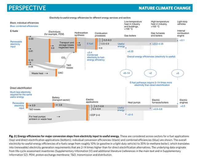 波茨坦氣候影響研究所(PIK)的研究人員在《自然·氣候變化》(Nature Climate Change)上撰文指出,氫基燃料主要用于航空或工業過程等不容易電氣化的領域。但是,生產這些燃料的效率太低、成本太高,而且它們的可用性也太不確定,無法廣泛取代化石燃料,例如用于汽車或供暖。對大多數行業來說,直接用電,比如電池驅動的電動汽車或熱泵,更經濟。對氫燃料的依賴導致對化石燃料和溫室氣體排放的進一步依賴。