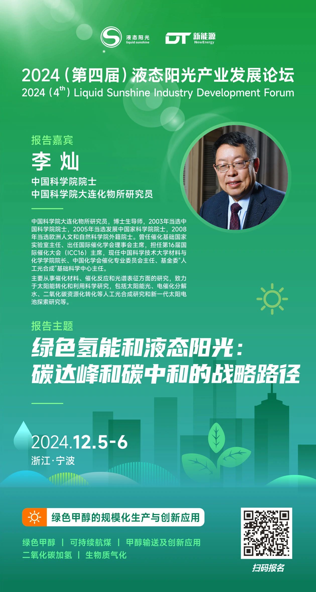 中國科學院院士李燦:《綠色氫能和液態陽光:碳達峰和碳中和的戰略路徑》 | 2024第四屆液態陽光論壇