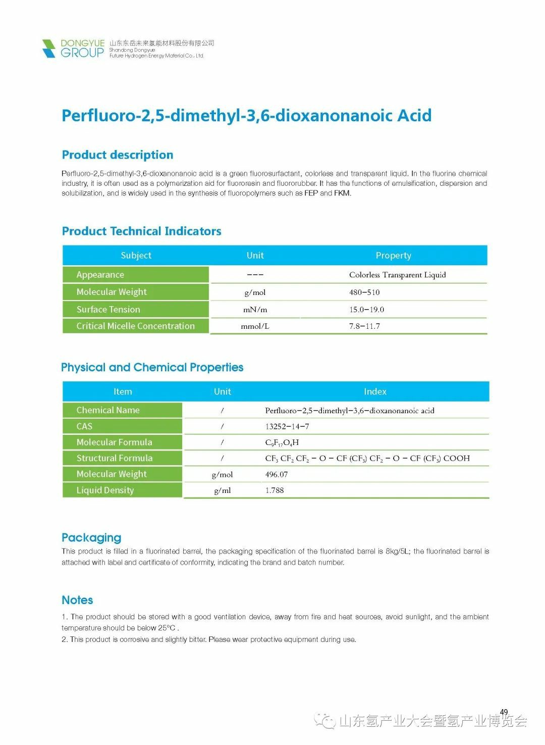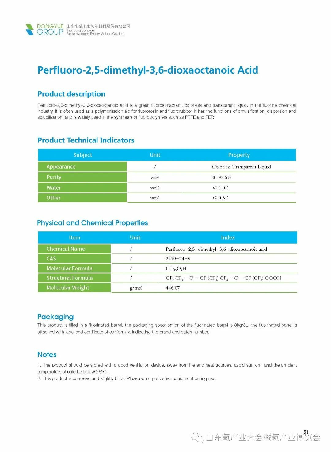 從2020年開始,公司逐步確立了“以全氟磺酸樹脂為代表的高功能含氟聚合物產品集群為中心、以六氟環氧丙烷代表的含氟精細化學品集群為依托、以燃料電池膜含氟功能膜產品集群為導向”的三個產品集群互相支撐的發展路線。