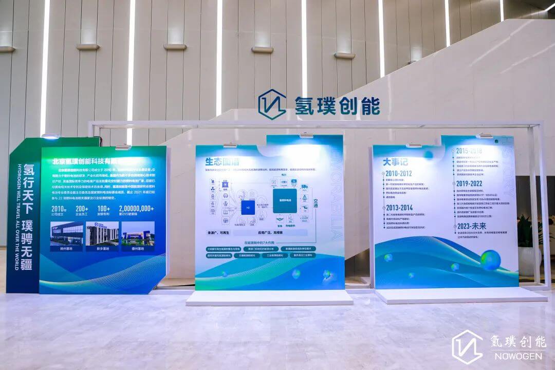上圖為氫璞創(chuàng)能公司簡介、生態(tài)圖譜、歷年大事紀(jì),放置于大廳供參會者閱讀
