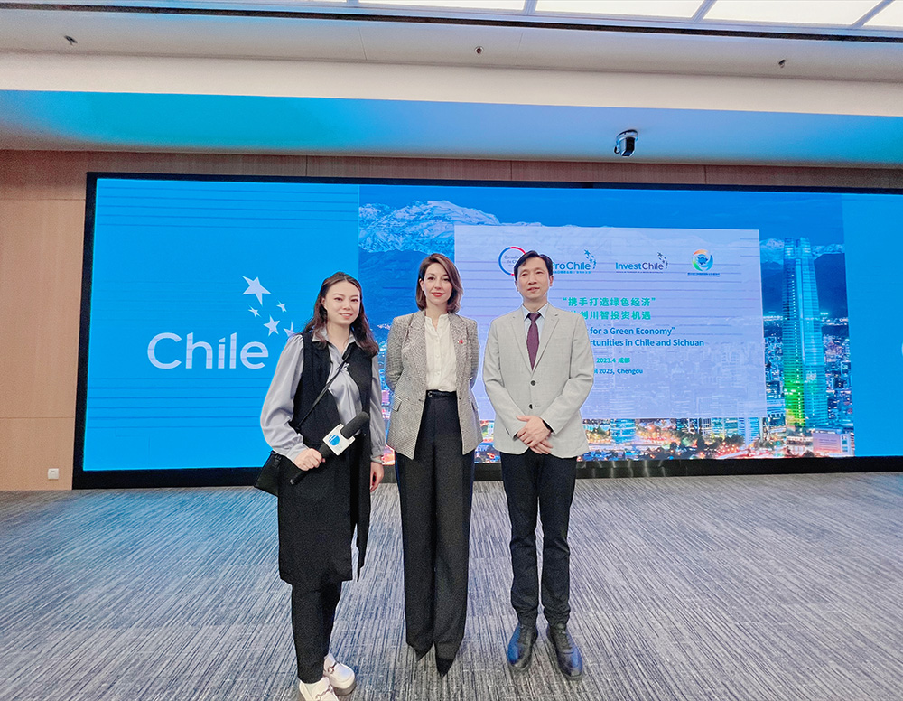 基于此,2023年4月12日,智利駐成都總領館、智利出口促進總局、四川省民間組織國際交流促進會聯合主辦了“攜手打造綠色經濟—共創川智投資機遇研討會”,與會嘉賓圍繞深化智利與四川的交流合作,共同挖掘雙方新的合作渠道、探討新的合作方式、謀劃新的合作平臺等進行了深入交流,四川省外事辦公室到場指導。