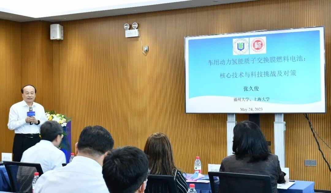 張久俊院士發表了《車用動力氫能質子交換膜燃料電池:核心技術與科技挑戰及對策》專題報告,詳細介紹了推進燃料電池車產業化面臨的各種難題,并從質子交換膜燃料電池的催化劑、電解質膜、氣體擴散層三個方面對產品耐久性提升所面臨的挑戰及解決方法作出深入闡述。