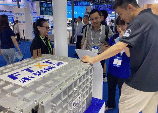 展會現場,未勢能源重點展出了氫電、電堆、儲氫三大平臺多款“明星”產品,包括255kW大功率燃料電池系統、300kW石墨板電堆等。