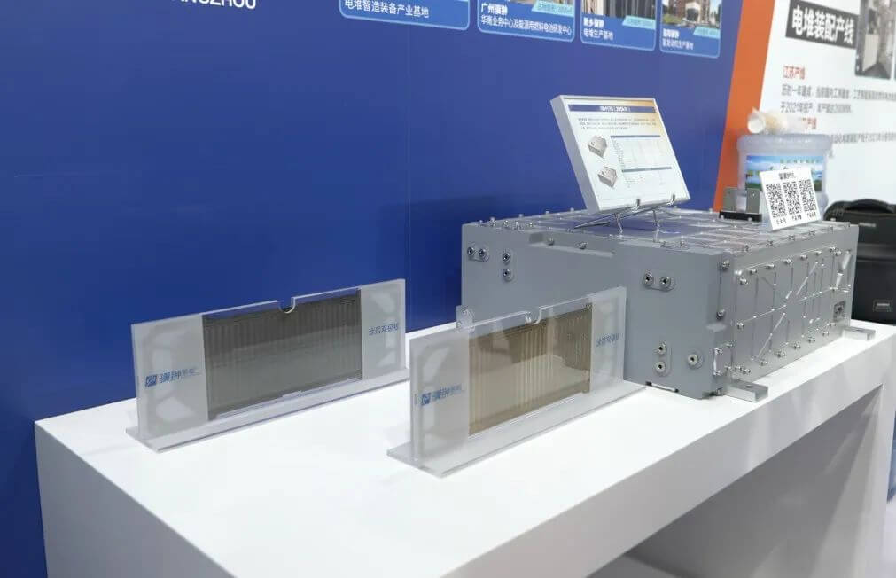 展會現場,驥翀氫能重點展出了MH系列電堆、備用電源和核心零部件等多款產品。