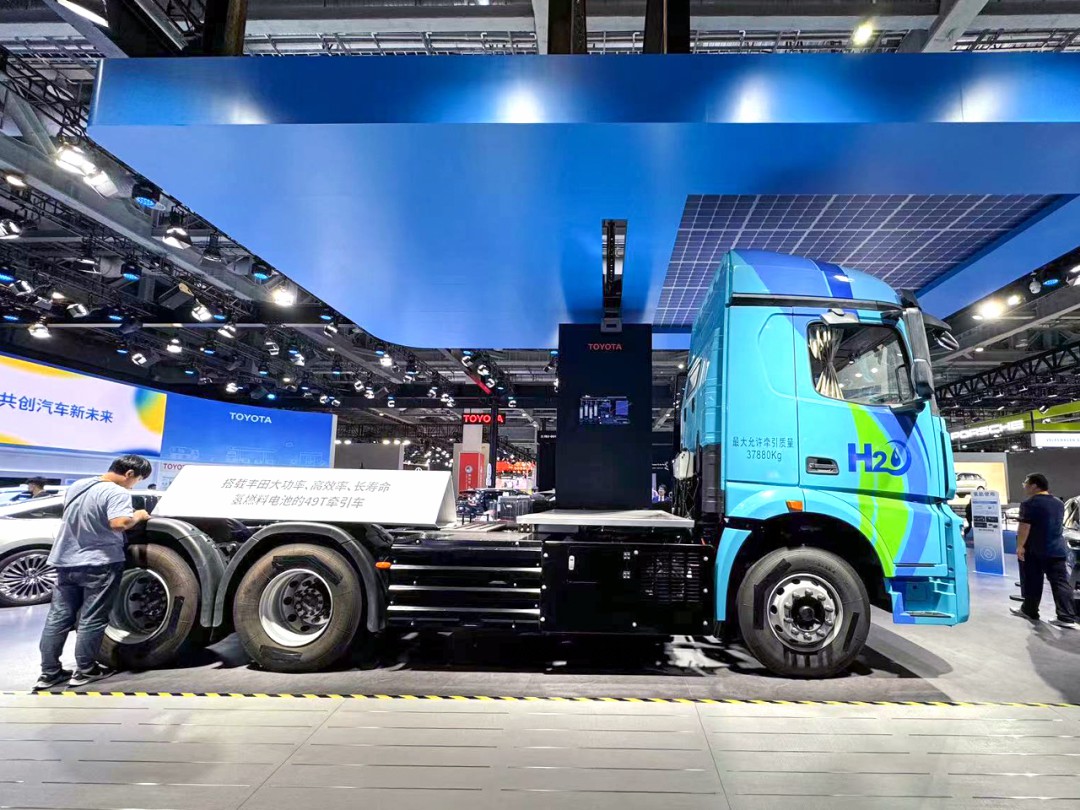 此次展出的這臺(tái)更換式儲(chǔ)氫系統(tǒng)燃料電池重卡,由山西美錦能源股份有限公司(以下簡(jiǎn)稱(chēng)“美錦能源”)旗下氫燃料電池重卡在豐田汽車(chē)公司(以下簡(jiǎn)稱(chēng)“豐田”)展區(qū)亮相。