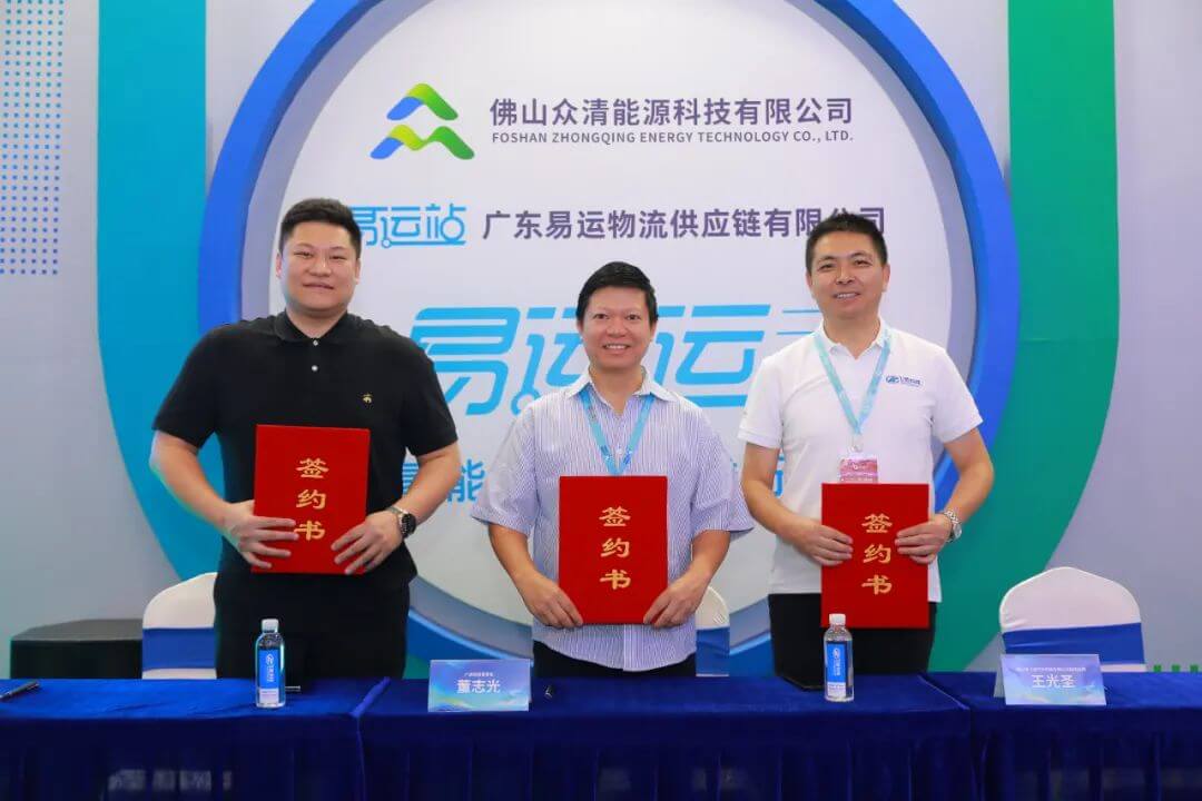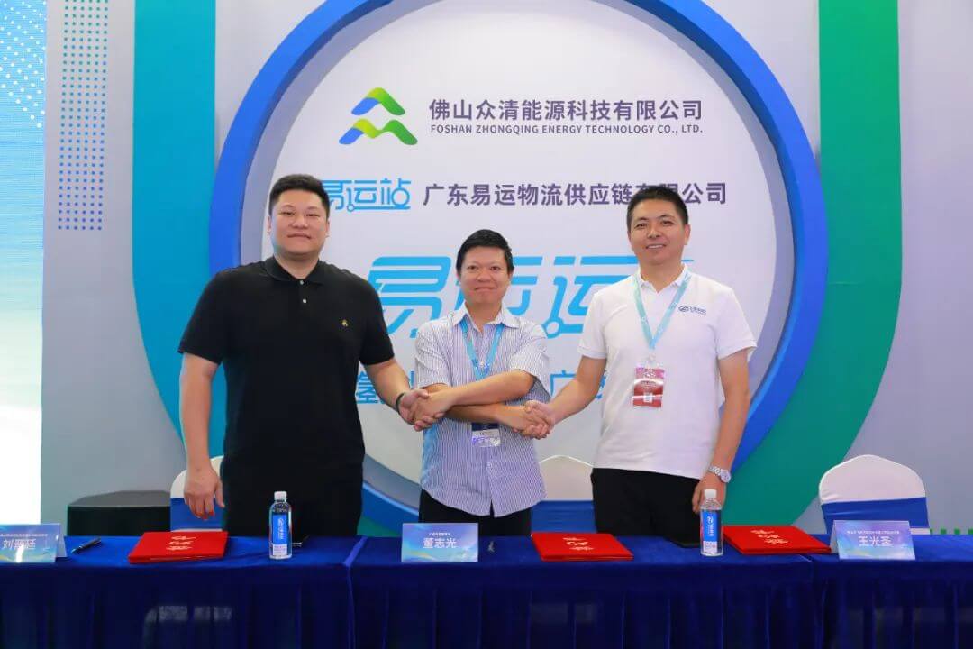 展會期間還舉辦了“綠色運蔬 從氫開始”百車采購協(xié)議”簽約儀式,廣東易運物流供應(yīng)鏈有限公司副總經(jīng)理劉晉延、物流供應(yīng)鏈?zhǔn)聵I(yè)部總監(jiān)何偉輝,廣順集團(tuán)董事長董志光,飛馳科技副總經(jīng)理王光圣等企業(yè)領(lǐng)導(dǎo)出席簽訂儀式。此次協(xié)議的簽訂,一方面旨在貫徹落實《廣東省加快氫能產(chǎn)業(yè)創(chuàng)新發(fā)展的意見》,以氫能應(yīng)用場景推動“制、儲、運、用”全產(chǎn)業(yè)鏈條發(fā)展,利用《綠色運蔬》農(nóng)貿(mào)物流園應(yīng)用場景,推廣應(yīng)用氫能冷鏈運輸車,另一方面三方將共同組織優(yōu)勢資源,以燃料電池示范城市群應(yīng)用為結(jié)合點,在廣東示范城市群地區(qū)共同合作推廣100輛飛馳牌4.5T燃料電池冷藏運輸車。《百車采購協(xié)議》的簽署給氫能物流運輸車應(yīng)用端帶來創(chuàng)新的合作運營模式,同時本次簽約是《綠色運蔬》項目落地中最為重要的環(huán)節(jié),也是三方打造廣東省氫能應(yīng)用示范園重要的第一步。
