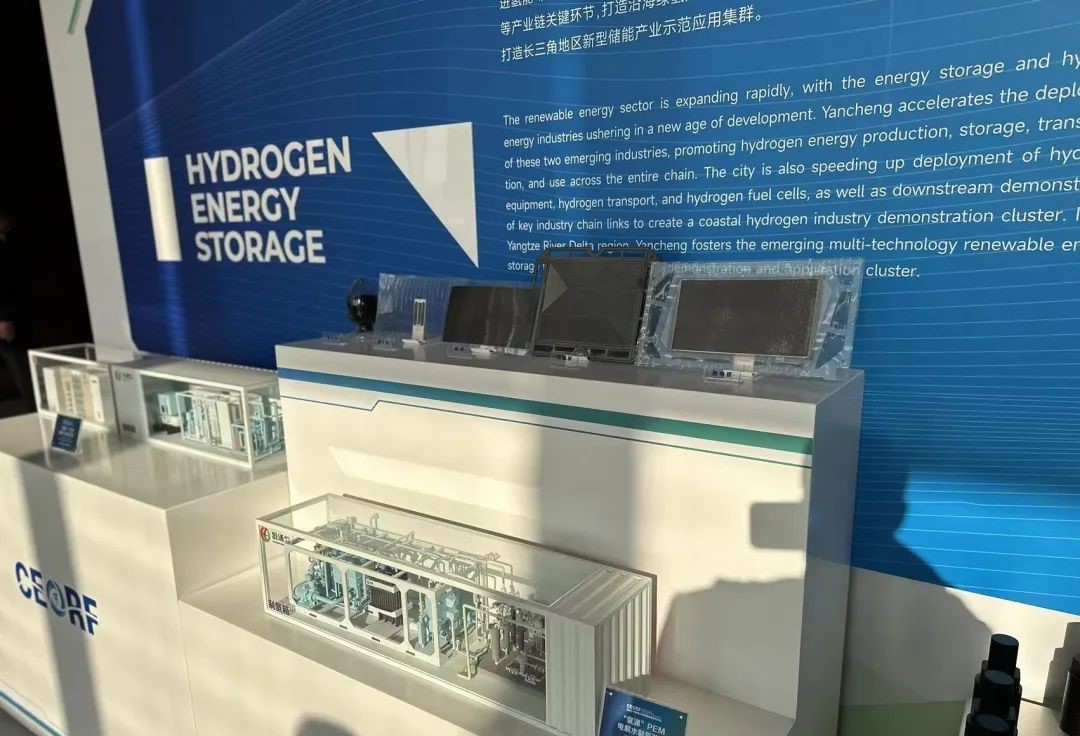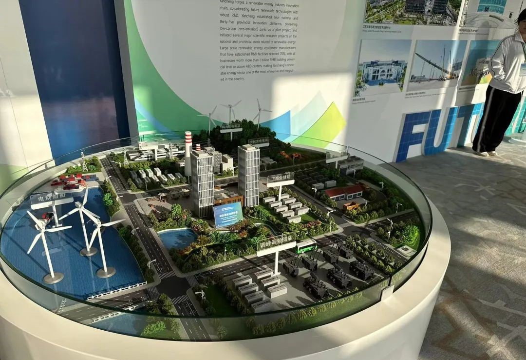 現(xiàn)場(chǎng)外,一系列風(fēng)電、光伏產(chǎn)業(yè)設(shè)備有序展覽。鹽城的“風(fēng)光”資源得天獨(dú)厚。鹽城是江蘇乃至全國(guó)海上風(fēng)電開(kāi)發(fā)建設(shè)條件最好的區(qū)域之一,現(xiàn)有可開(kāi)發(fā)的海上風(fēng)電和光伏資源約60GW,相當(dāng)于3個(gè)三峽電站。鑫思創(chuàng)氫能的參會(huì)代表們深入了解了鹽城的新能源產(chǎn)業(yè)現(xiàn)狀和發(fā)展趨勢(shì),積極與各參會(huì)人員交流,分享了公司在氫能領(lǐng)域的研發(fā)和產(chǎn)業(yè)化經(jīng)驗(yàn)。