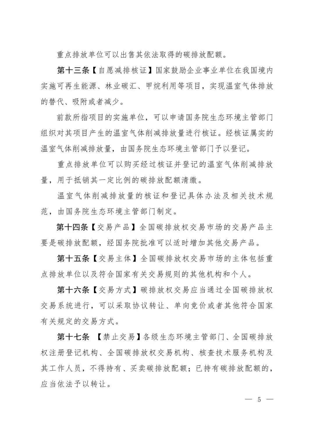 《碳排放權(quán)交易管理暫行條例(草案修改稿)》全文