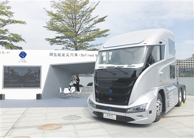 廣東漢合汽車技術(shù)有限公司自動(dòng)駕駛氫燃料電池重卡亮相展會(huì)。