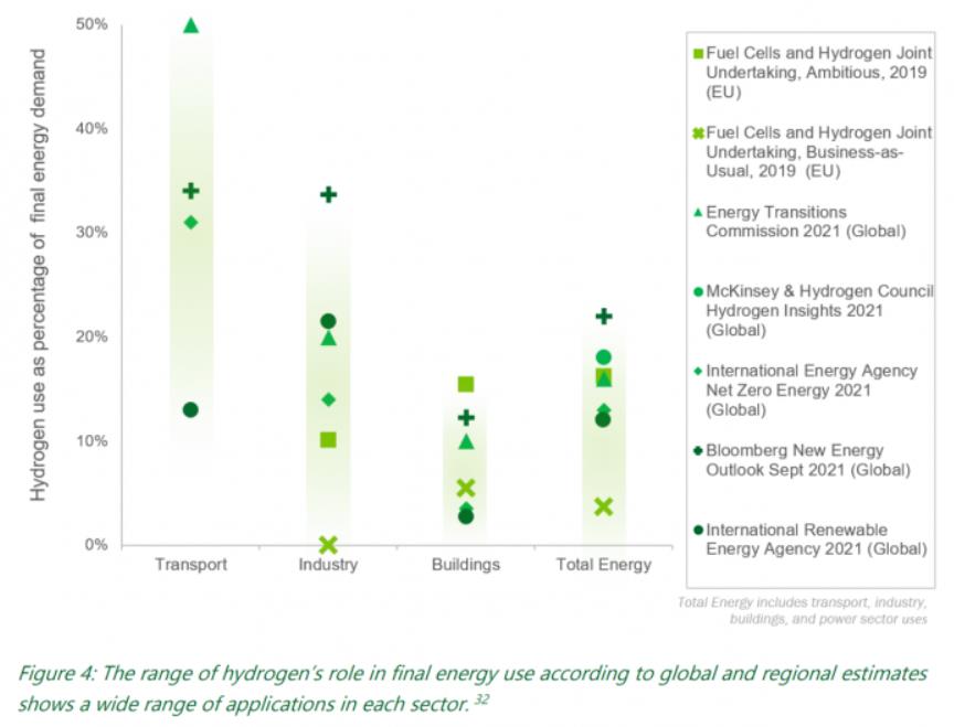 圖 4 - 預估氫能在全球各個領域的廣泛應用