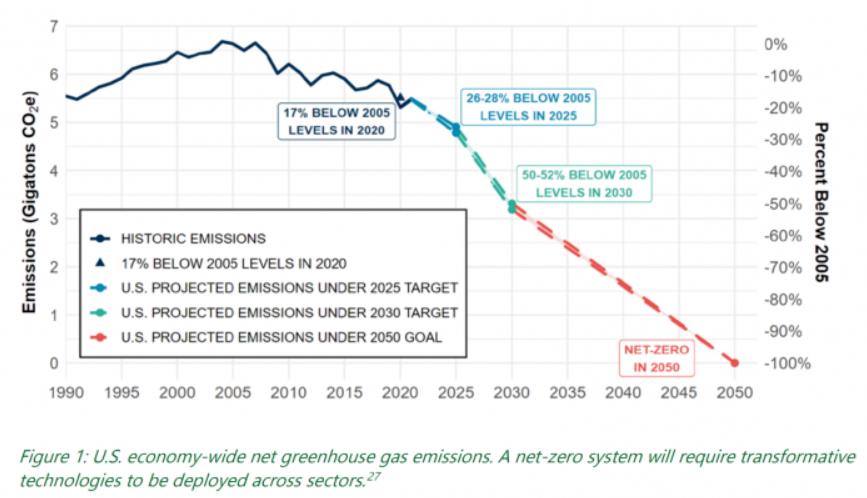圖 2 - 預計到 2050 年的美國溫室氣體凈排放量 / 清潔電網和凈零排放目標