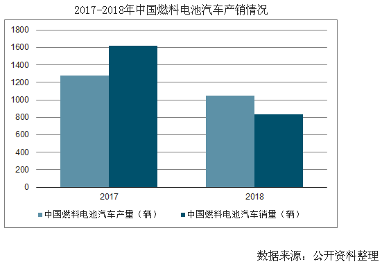 2018年,中國燃料電池汽車明顯下滑,但是產量達1619輛,同比增加了27%,其中,2018年12月生產的車輛多達1153輛,預計這些車輛部分將在2019年實現銷售,故銷售市場有回暖預期。