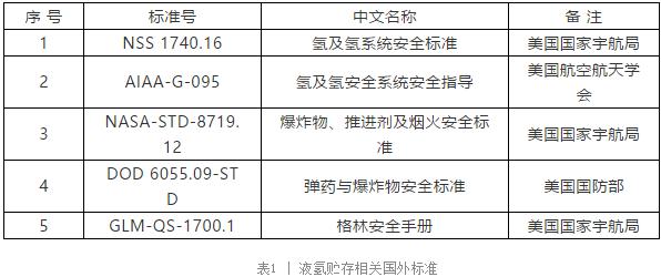 2.3 液氫貯存相關(guān)標(biāo)準(zhǔn)