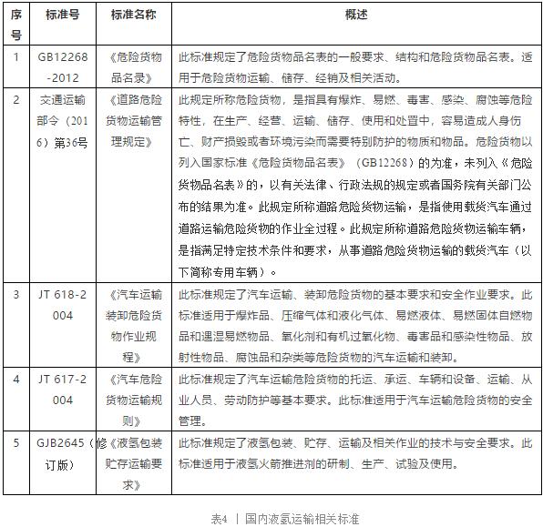 國外現(xiàn)行標(biāo)準(zhǔn)中涉及到關(guān)于液氫運(yùn)輸?shù)臉?biāo)準(zhǔn)如下表所示: