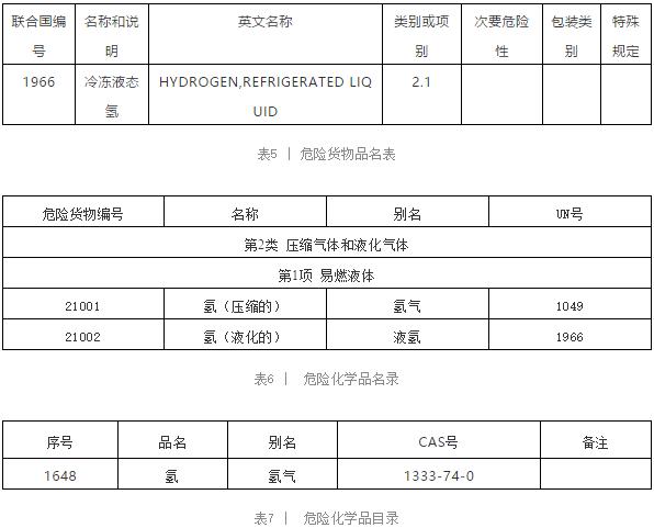 液氫的危險(xiǎn)類別、項(xiàng)別見表5,屬于第2類危險(xiǎn)貨物: