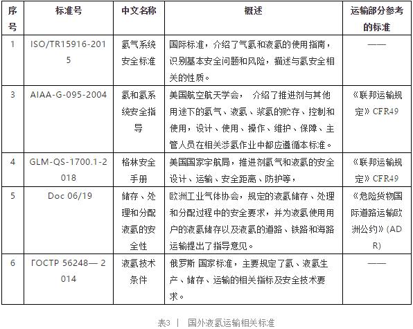 3.3 液氫運(yùn)輸?shù)南嚓P(guān)標(biāo)準(zhǔn)
