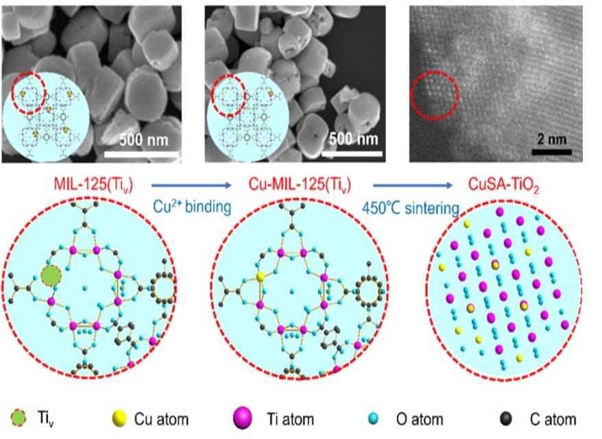 “研究的核心是通過鈦基有機框架材料MIL-125中鈦空位的設計和可控合成,開發(fā)出比表面積大、鈦空位豐富的二氧化鈦納米材料,錨定過渡金屬銅單原子作為載體,使銅和二氧化鈦形成牢固的‘銅-氧-鈦’鍵。”柳清菊介紹,在光催化制氫反應過程中,一價陽離子銅和二價陽離子銅的可逆變化極大地促進了光生電子-空穴的分離和傳輸,大大提高了光生電子的利用率,突破了產氫量子的效率,達到56%。這一突破得到了歐洲科學院院士、倫敦大學光催化與材料化學終身教授唐軍旺團隊的驗證。