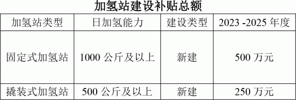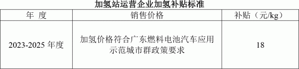(一)加氫站運(yùn)營(yíng)扶持:對(duì)于加氫價(jià)格符合廣東燃料電池汽車應(yīng)用示范城市群政策要求的加氫站,按以下補(bǔ)貼總額上限給予運(yùn)營(yíng)企業(yè)加氫補(bǔ)貼。