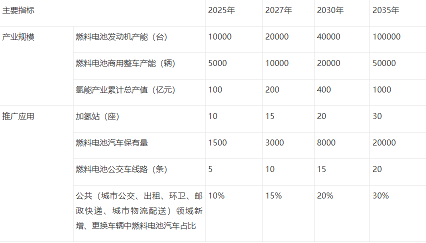 《規劃》發展目標:總體分為三個階段:近期(2023—2027年)完成氫能產業優勢培育,中期(2027—2030年)達到氫能產業加速發展,遠期(2031—2035年)實現氫能產業規模引領。