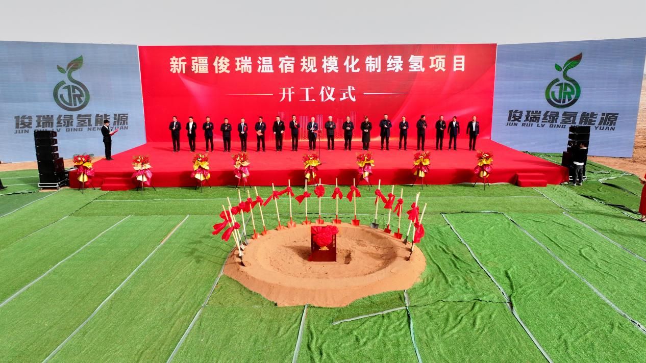 3月23日上午,新疆俊瑞溫宿規模化制綠氫項目開工儀式在溫宿縣成功舉辦。十一屆全國人大外事委員會副主任委員、中央對外聯絡部原副部長馬文普,縣委書記黃振軍,新疆俊瑞綠氫能源有限公司總經理田生軍出席活動并分別致辭。阿克蘇地委委員、行署副專員俞國明宣布項目啟動。