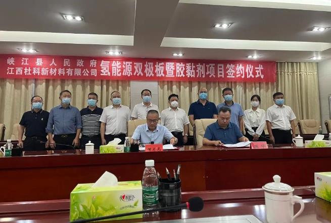 2022年10月5日,惠州市杜科新材料有限公司與江西省峽江縣人民政府在峽江縣宣傳文化中心舉行杜科新材料江西基地建設簽約儀式。峽江縣委書記尹嶸峰、縣長謝啟龍等縣四套領導班子成員親臨簽約現場指導簽約。簽約儀式由峽江縣委常委、副縣長龍足立主持。