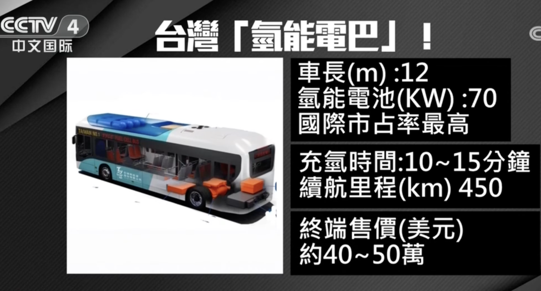 這是全臺(tái)第一輛以氫能燃料電池作為動(dòng)力的巴士,12米長標(biāo)準(zhǔn)型大型客車采用的動(dòng)力模塊是70千瓦的氫能電池,加氫10到15分鐘,能提供超過450公里的續(xù)航里程。