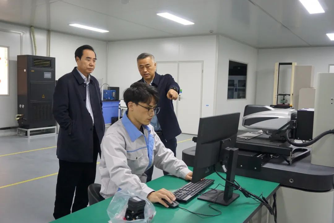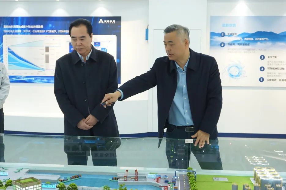 公司董事長梁鐵強攜各業(yè)務板塊負責人陪同崔院長先后參觀了公司展廳、性能檢測實驗室、集成測試車間、燃料電池系統(tǒng)產線、金屬雙極板涂層線及清洗線等產線裝備。