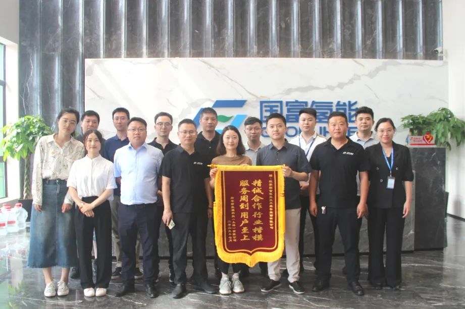 羚??萍紴閲?guó)富氫能授予錦旗榮譽(yù)“精誠(chéng)合作行業(yè)楷模,服務(wù)周到用戶至上”,這一面火紅的錦旗,承載了客戶對(duì)國(guó)富氫能優(yōu)質(zhì)產(chǎn)品和周到服務(wù)的贊譽(yù),也彰顯了國(guó)富-羚牛的深厚情誼,雙方將深化商業(yè)互信,拓展互利合作,共謀氫能產(chǎn)業(yè)大發(fā)展。國(guó)富氫能也將感恩于心,服務(wù)與行,匠心品質(zhì),氫盡所能!